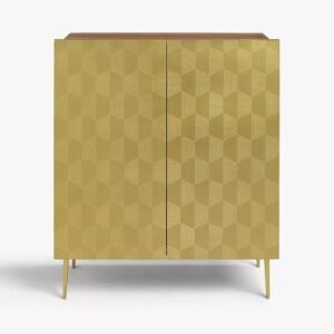 Hand Painted Palm Solid Wood 2 Door Golden Cabinet (1)