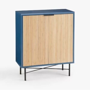 Hand Painted Palm Solid Wood 2 Door Blue Cabinet (3)