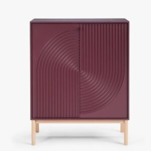 Hand Painted Palm Solid Wood 2 Door Maroon Cabinet (4)