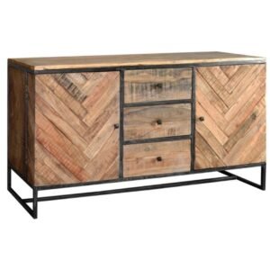 Industrial Lava Solid Wood 3 Drawer 2 Door Sideboard