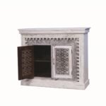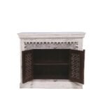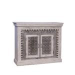 Hand Carved Jodha Solid Wood Iron Grill 2 Drawers media cabinet