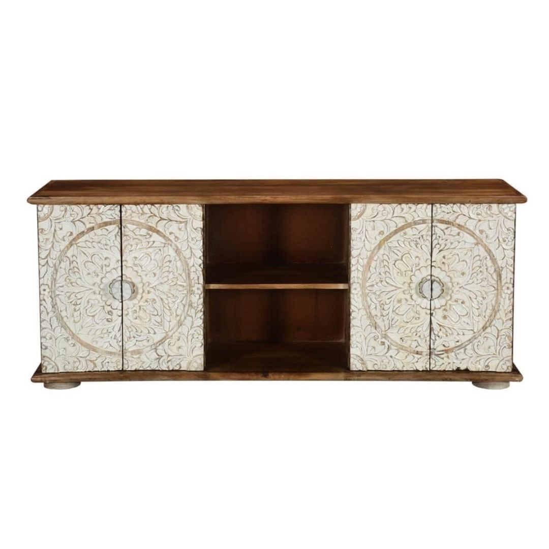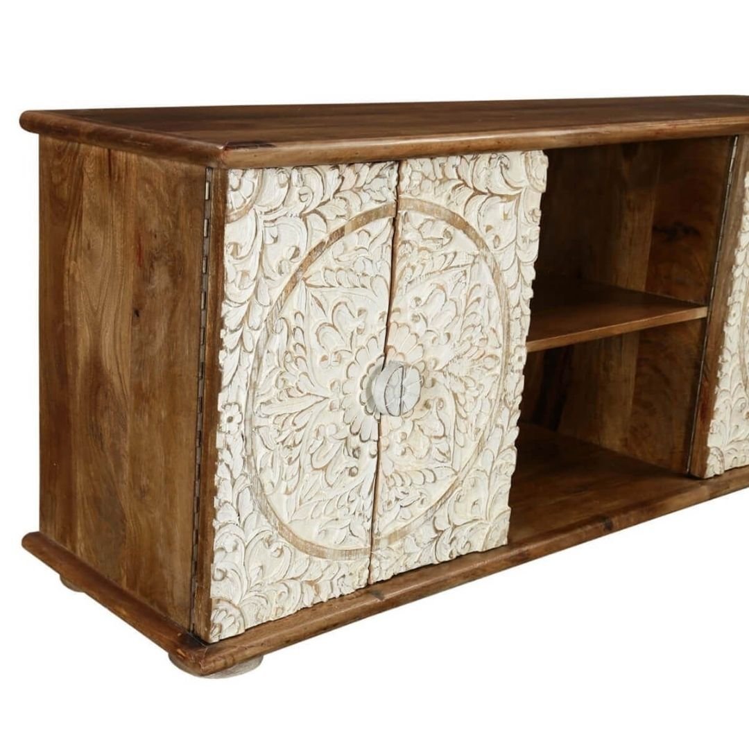 Hand Carved Darbar Indian Solid Wood TV Cabinet