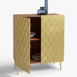Hand Painted Palm Solid Wood 2 Door Golden Cabinet (1)