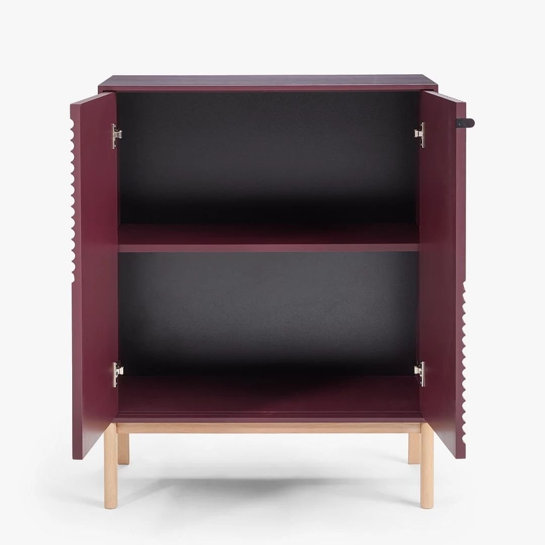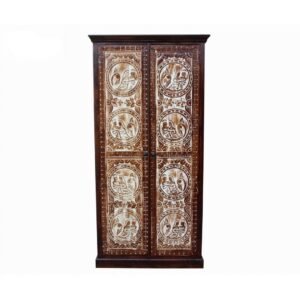 Hand Painted Palm Solid Wood 2 Door Maroon Cabinet (4)