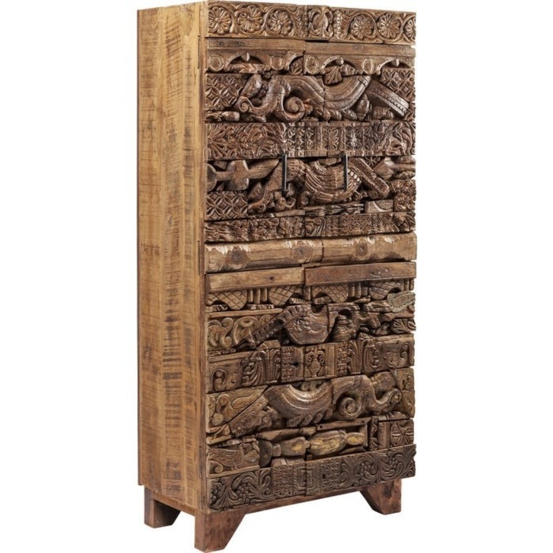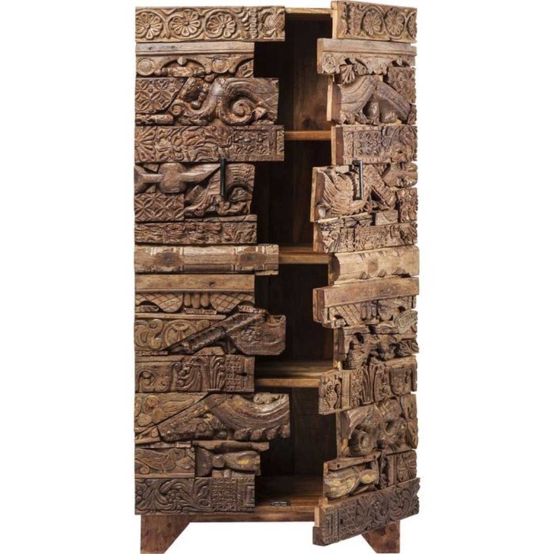 Indian Inspired Tribal Carved Panel Solid modern kitchen cabinets