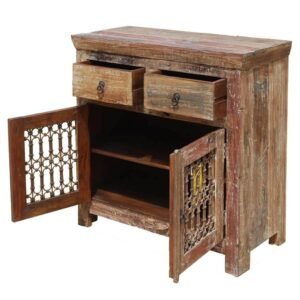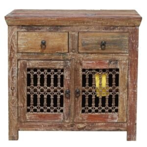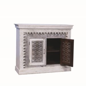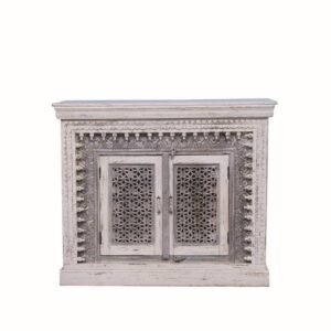 Hand Carved Jodha Solid Wood Iron Grill 2 Drawers media cabinet