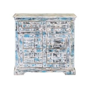 Hand Carved Jodha Solid Wood Blue Vintage Cabinet