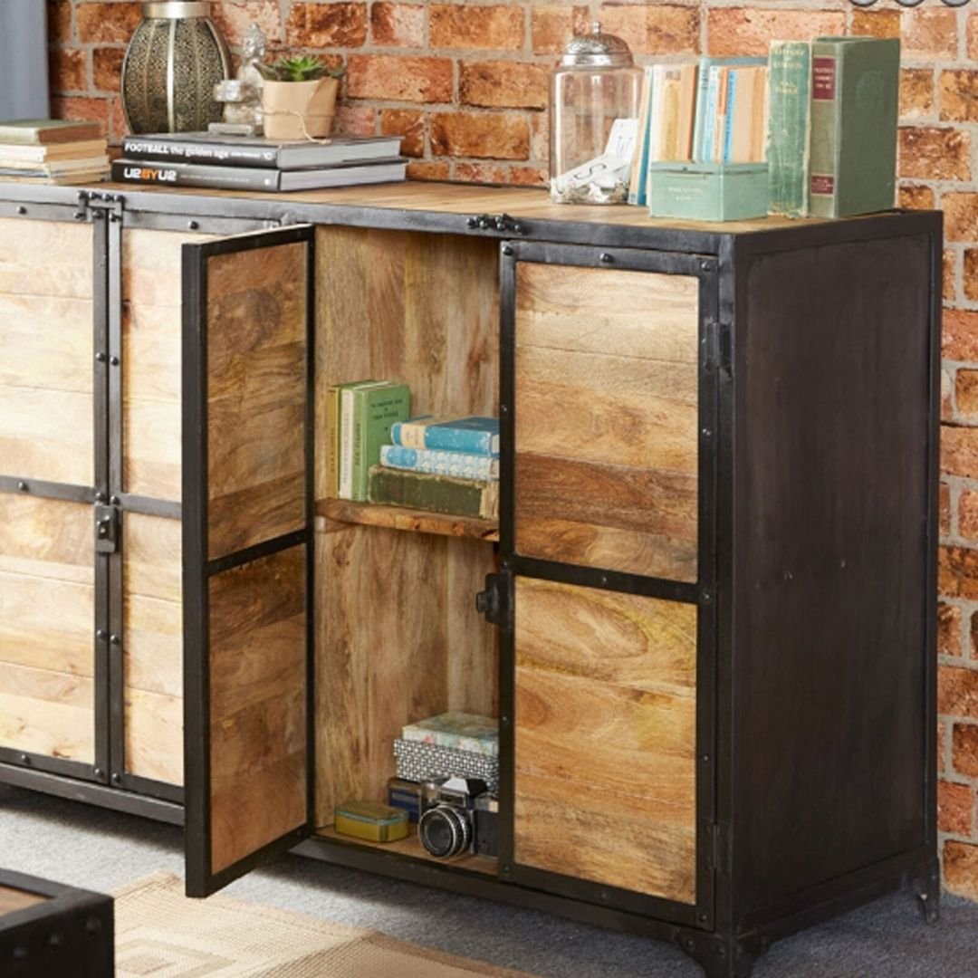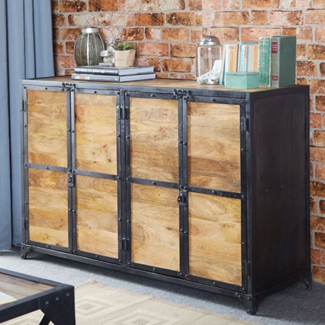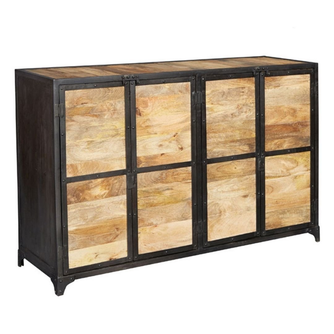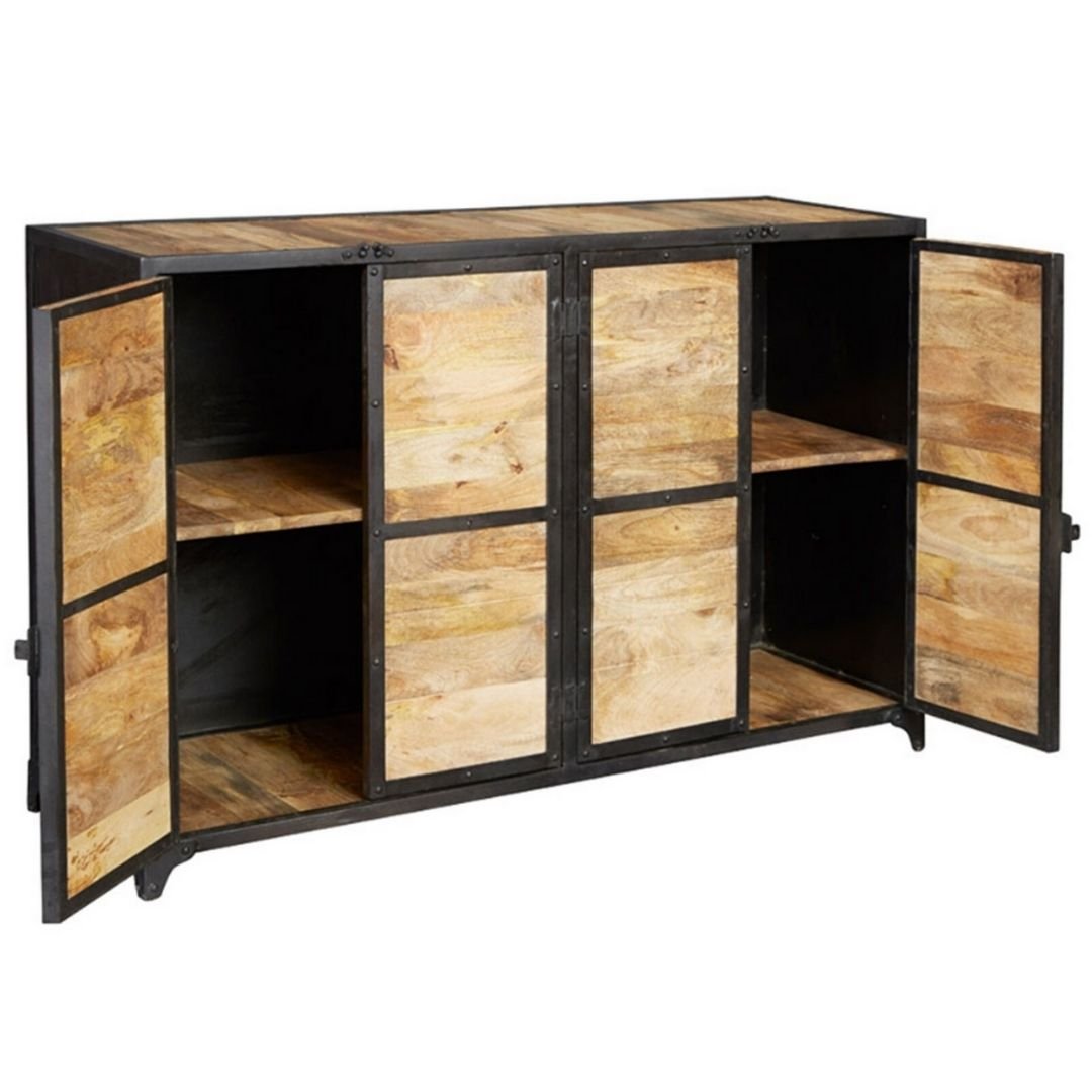 Industrial Barn Solid Wood Sideboard With 4 Doors