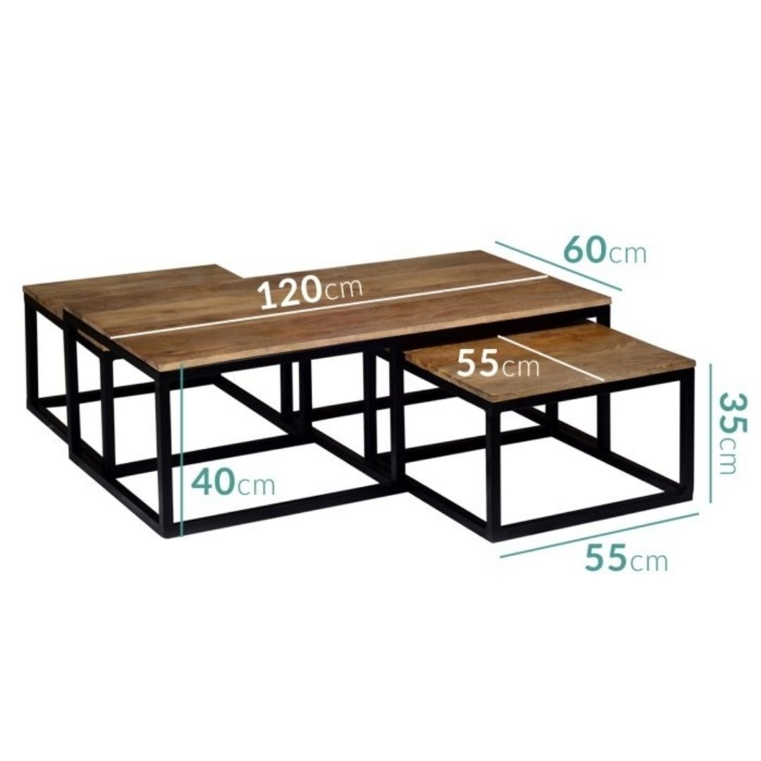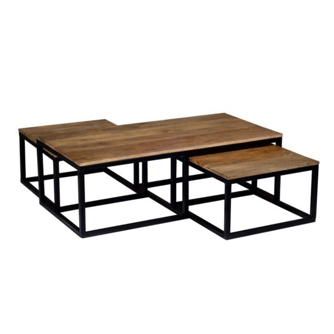 Industrial Lava Solid Wood Metal Legs Set of Nested Coffee Tables