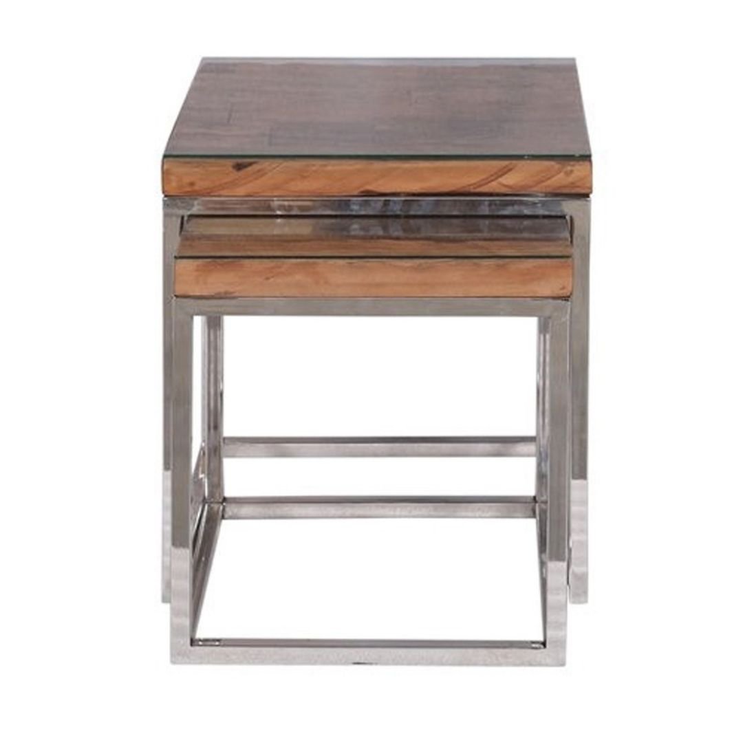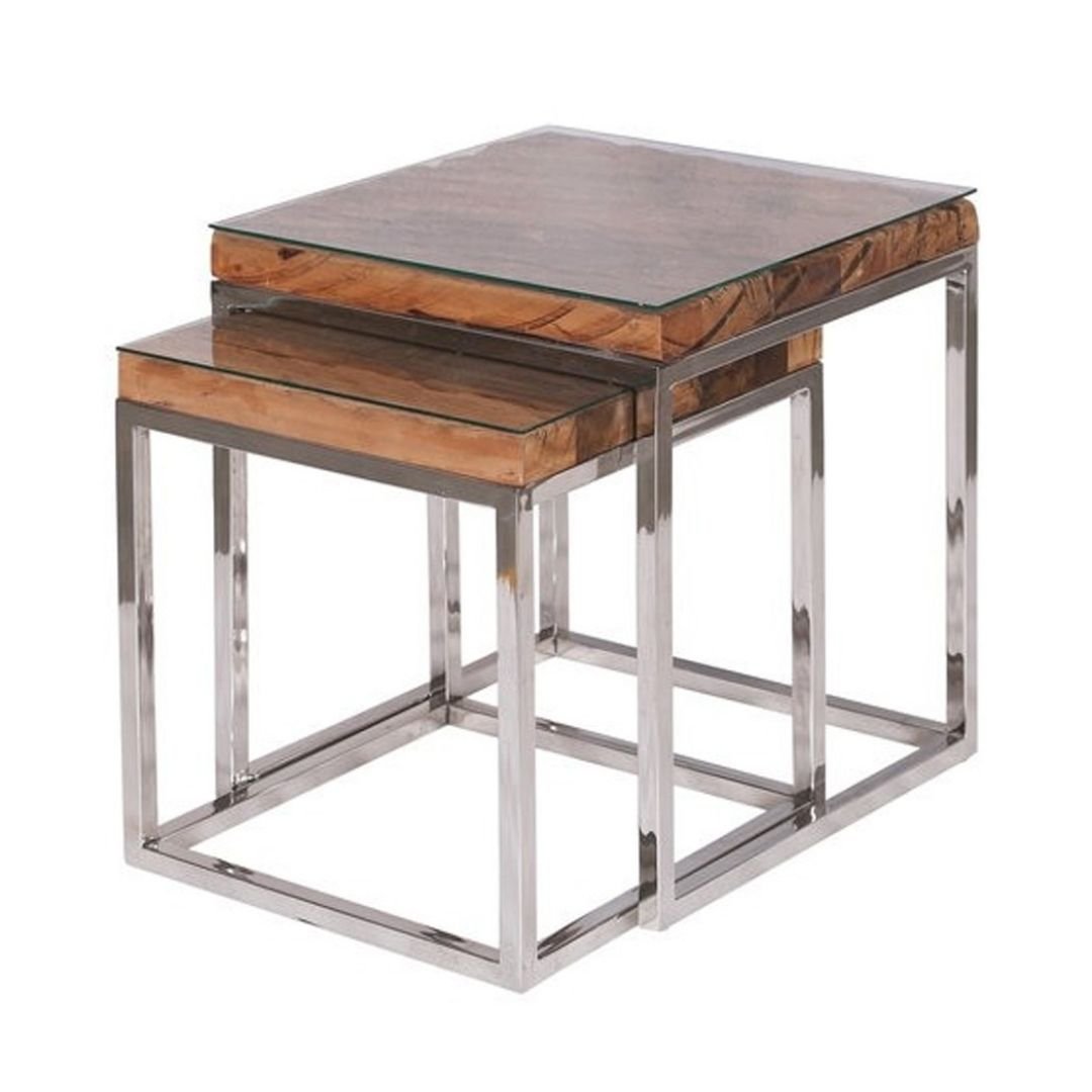 Industrial Live Edge Solid Wood Nested Side Table Set of 2