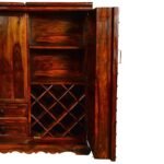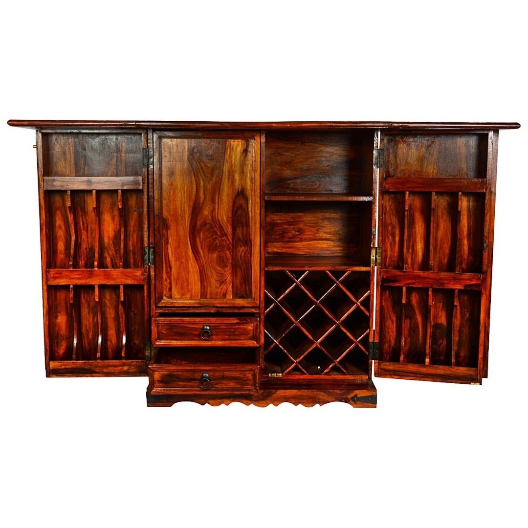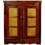 Inset Brass Work Solid Wood Bar Cabinet Designs for Home