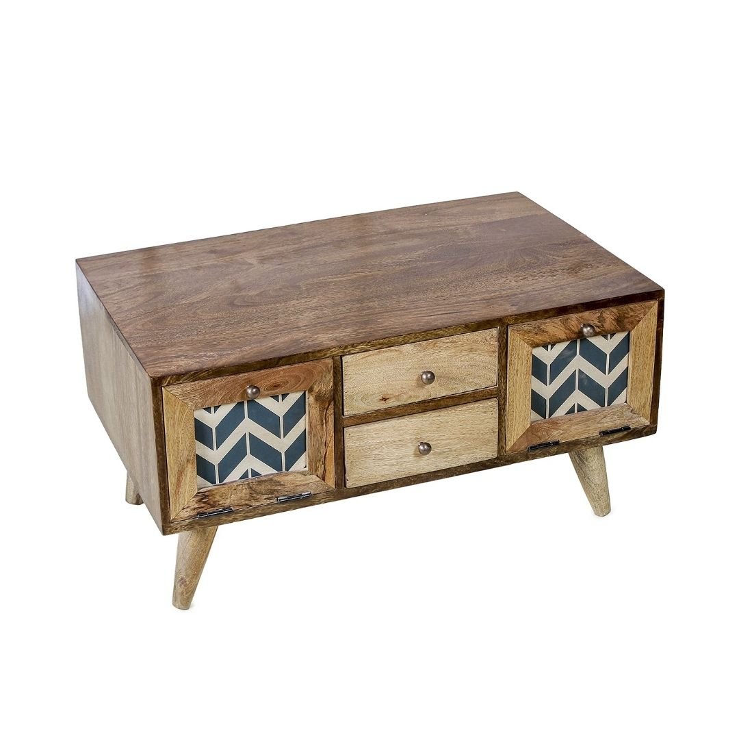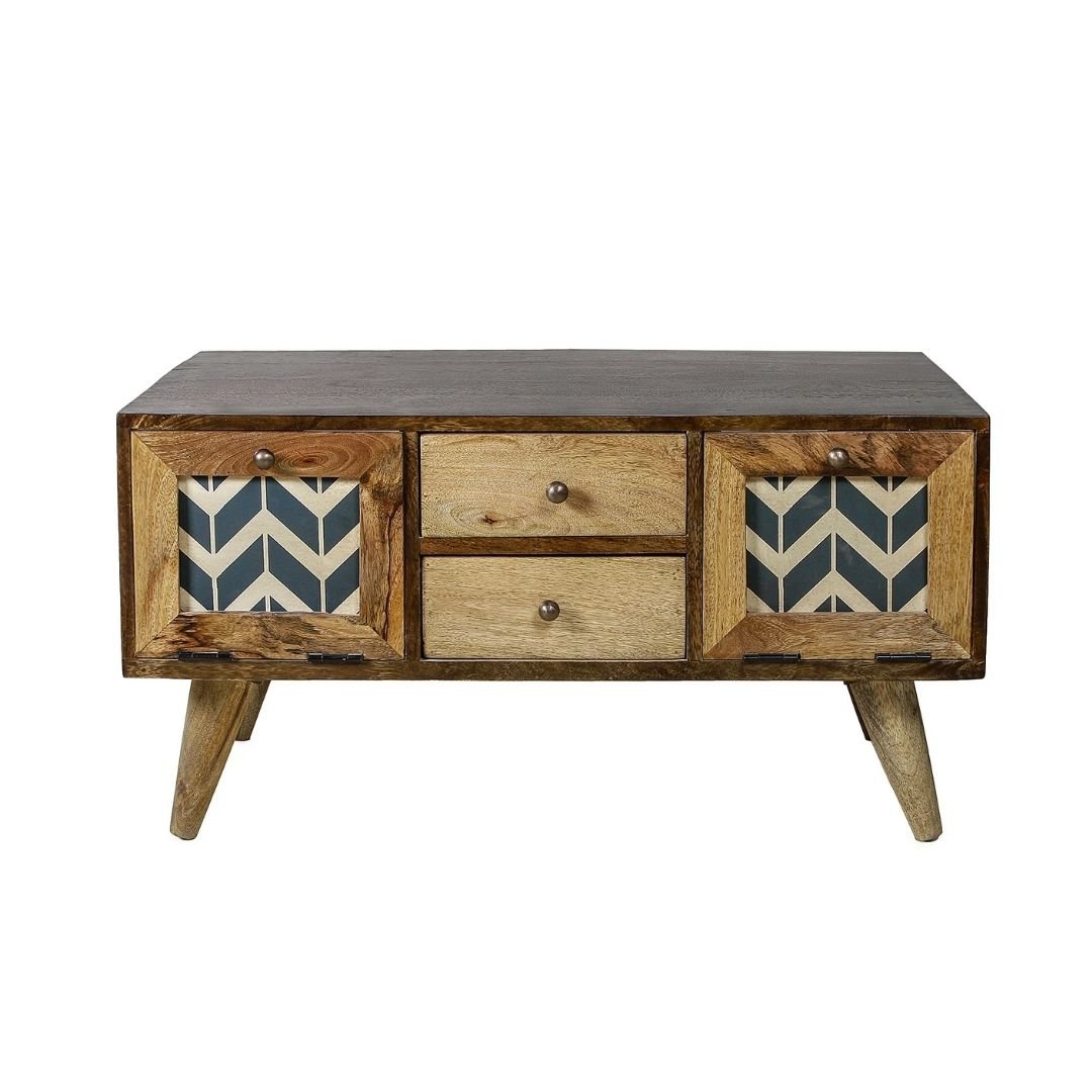 Modern Boston Solid Wood Printed Coffee Table with 2 Drawer and 2 Shelf