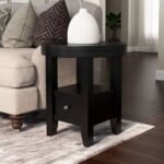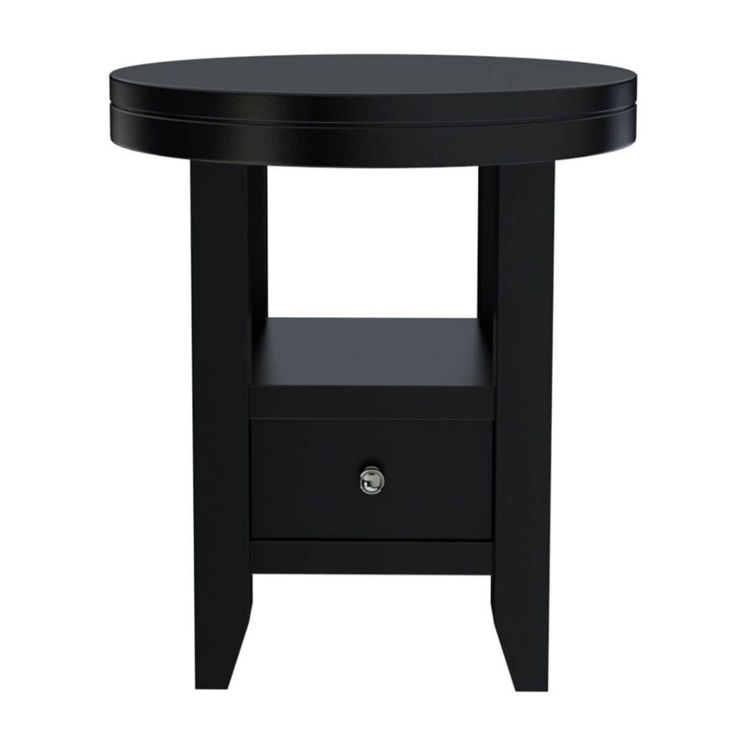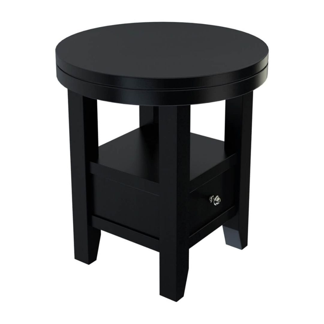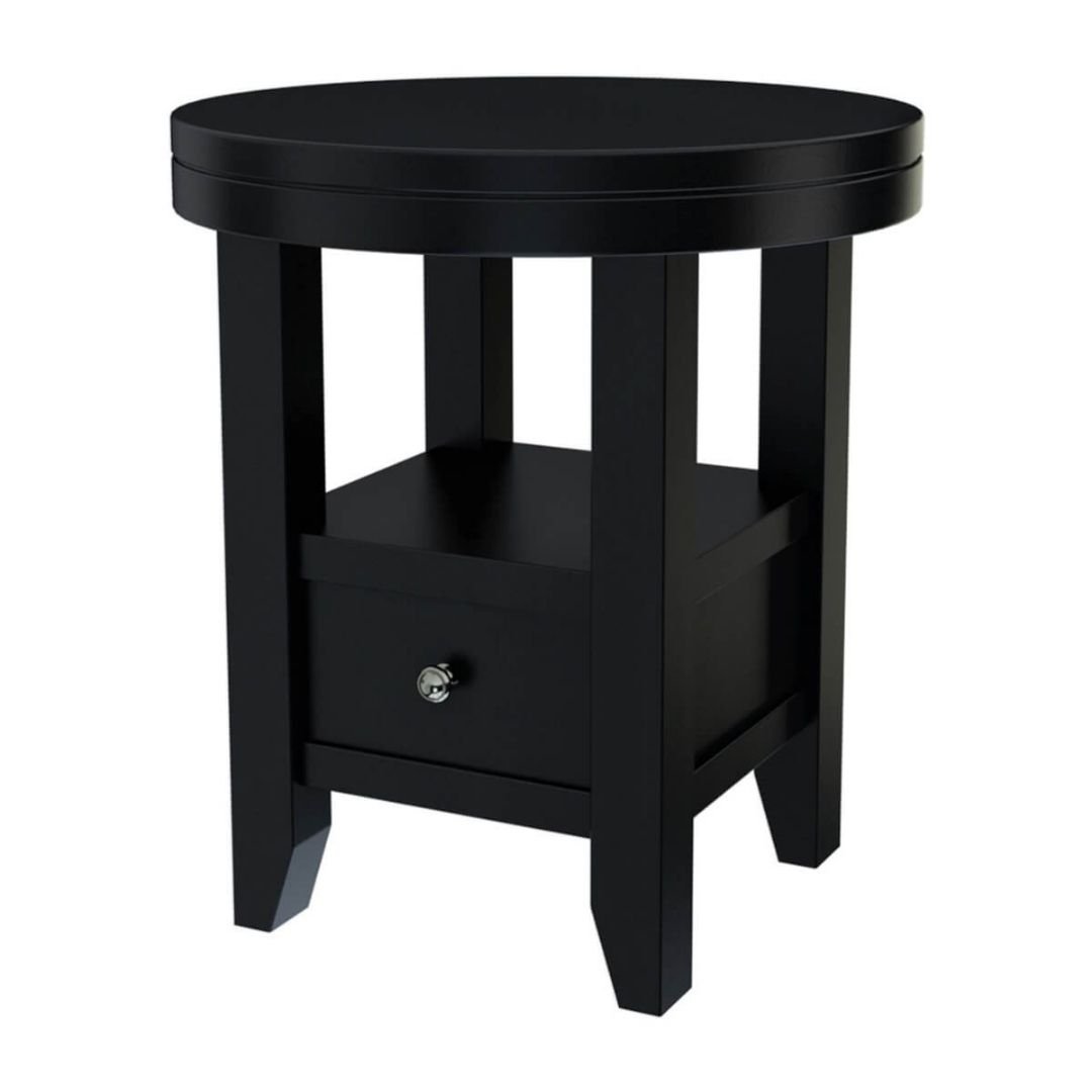 Modern Indian Solid Wood Round Bedside Table Shining Black