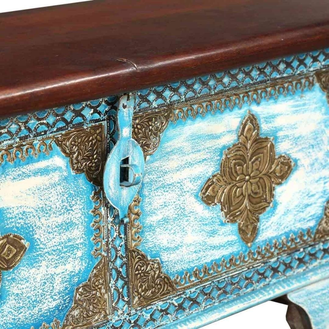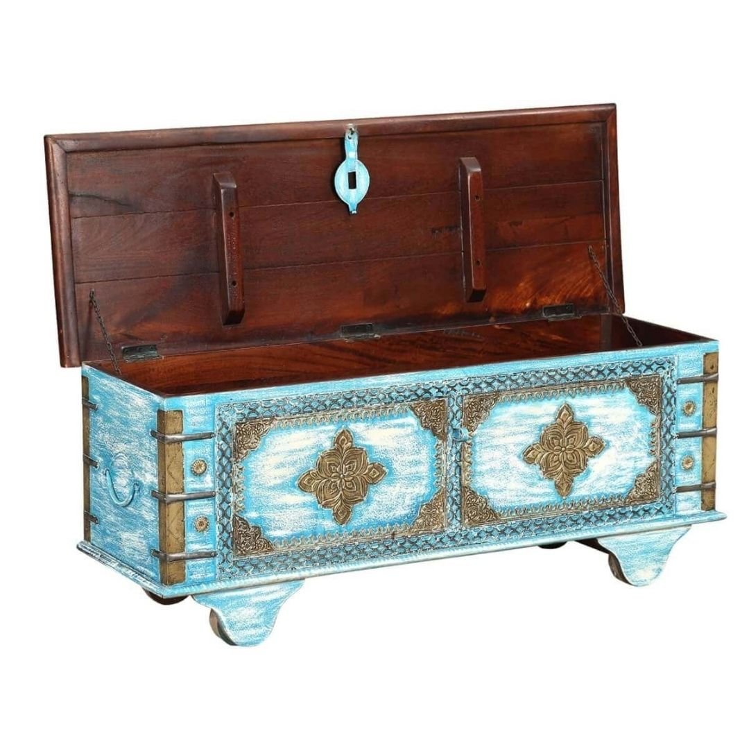Overlay & Inset Brass Work Solid Wood Chest Blue-Gold (11)