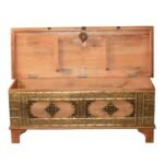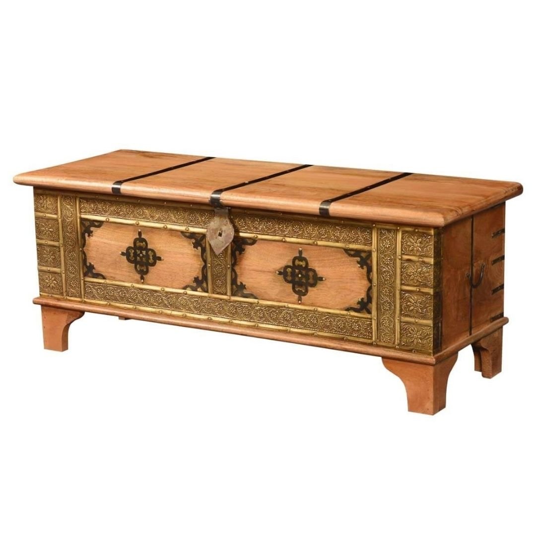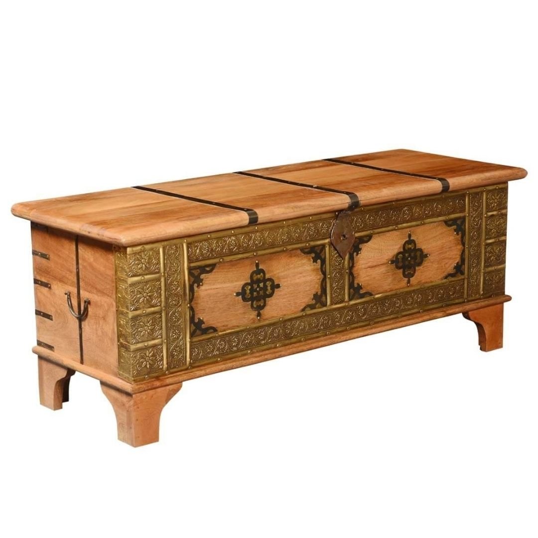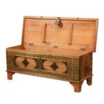Overlay & Inset Brass Work Solid Wood Chest Natural-Golden (16)