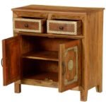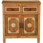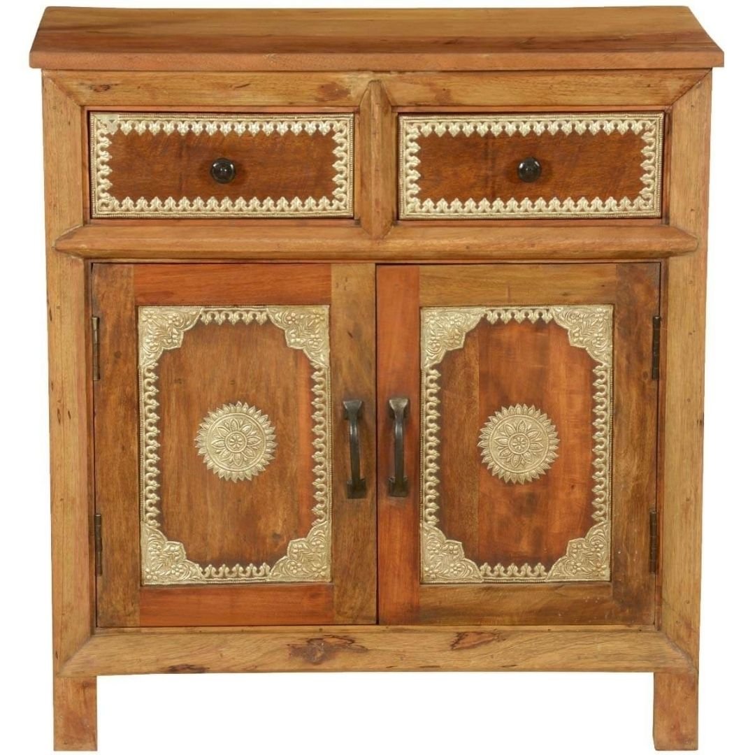 Hand Carved Jodha Solid Wood Iron Grill Door Large Cabinet